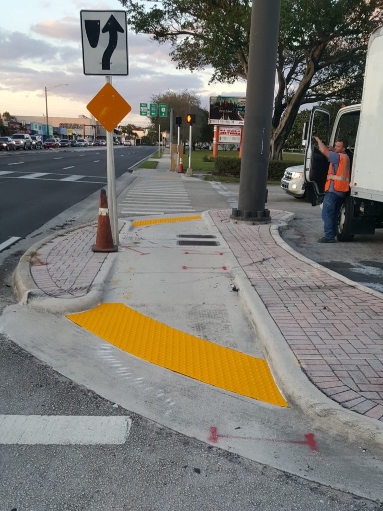 FDOT contract T4406. +/-42 locations (+/-668 sq.ft.) of Top Guard yellow detectable warnings installed along SR 5 (N. Federal Hwy) from Broward Blvd to NE 17th Way in Ft. Lauderdale (Broward County). Community Asphalt as prime, Interstate Construction as sub.